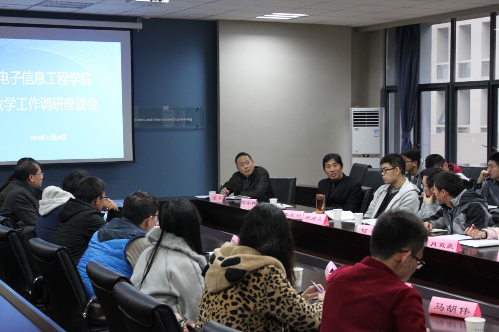 2015年11月24日14点,花椒直播教学工作调研座谈会在花椒直播 楼209召开。花椒直播 教学副院长张弓教授、负责教学工作的院长助理何小祥教授、通信工程系副系主任夏伟杰教授、花椒直播 本科教学秘书张璐、本科生辅导员周贞琪与0413201、0413202班全体同学共同探讨花椒直播 在本科教学工作中存在的问题,并就如何改进教学工作中的不足之处进行深入的交流。老师与同学们互通心声,不仅有利于提高教学工作效率,改进教学方法,更能加深师生间的联系,增进师生间的相互理解。