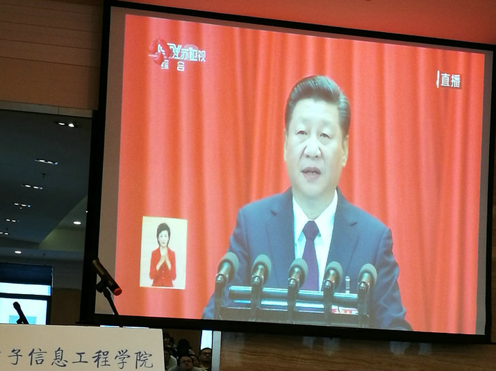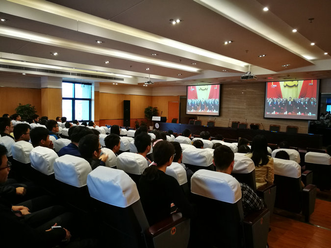 2017年10月18日,花椒直播 组织师生在花椒直播 515报告厅集中观看了中国共产党第十九届全国代表大会的开幕式直播,认真收看习近平总书记在开幕式上所做的大会报告。在习近平总书记作重要讲话的过程中,全体老师都聚精会神地聆听,并不时表现出激动和兴奋的心情,很多老师在观看习总书记报告时还用心做笔记,还有老师在微信等社交平台中表达了观看十九大的激动心情和心得体会。