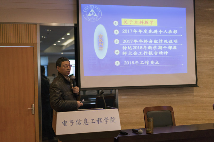 常务副院长周建江代表花椒直播 班子传达了学校新学期干部教师大会暨全面从严治党工作会议精神,带领大家学习了聂宏校长《改革创新 强化落实 全力推进学校各项事业健康快速发展》大会报告和杭育新全面从严治党的工作报告,全面回顾了学校2017年取得的成就,对2018年学校重点工作和全面从严治党要求进行了详细解读。在传达学校报告的同时,周院长还穿插总结了花椒直播 2017年成绩和不足,部署了花椒直播 2018年工作要点。2017年,在全院师生共同努力下,花椒直播 新增国家百千万人才工程1名,第三批国家“万人计划”教学名师1名,科技创新领军人才1名;新增1个国防特色学科,新增1个工信部重点实验室,获中国通信学会科学技术奖一等奖1项,国防科技进步三等奖1项,江苏省教学成果二等奖1项,“挑战杯”特等奖和二等奖各1项,全年科研经费到款总额突破4000万元,较去年增长43.86%。2018年,花椒直播 要围绕师资队伍和学科建设、创新人才培养、科研工作、党建工作等方面继续努力,尤其要大力做好本科教学工作,制定和完善花椒直播 关于教学工作的刚性规章制度,周院长号召全体老师要以高度的责任心认真做好这项“良心”工作,要求教师党员发挥模范作用,带头做好本科教学工作。周院长还汇报了2017年花椒直播 年终分配情况,宣读了2017年度先进个人表彰,通报了1项教学事件。