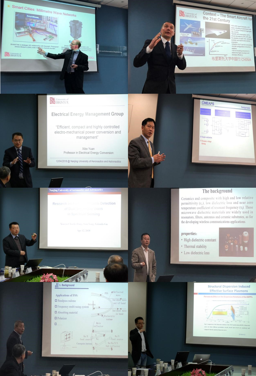 2018年4月12日,南航与英国Bristol大学电气、电子工程国际学术研讨会在花椒直播 顺利召开。此次研讨会由国交处、花椒直播 主办,自动化花椒直播 、材料花椒直播 、国教院、南京多媒体技术协会协办。会议参会代表17名,其中,有来自英国Bristol大学的理花椒直播 院长及有机化学专家Tim Gallagher教授、材料化学专家Charl Faul教授、数学统计学专家Feng Yu教授和工花椒直播 院长及通信系统与网络主任Andrew Nix教授、复合材料研究机构主任Fabrizio Scarpa教授、电气能源管理研究组Xibo Yuan教授以及国际合作交流管理负责人Michael Benson先生。同时,还有来自南航的电子信息花椒直播 赵永久副院长、曹群生教授、党小宇教授、李茁副教授、黎宁副教授,自动化花椒直播 阮新波副院长、材料花椒直播 傅仁利教授、理花椒直播 王正盛副院长、黄建平副教授和赵越老师。