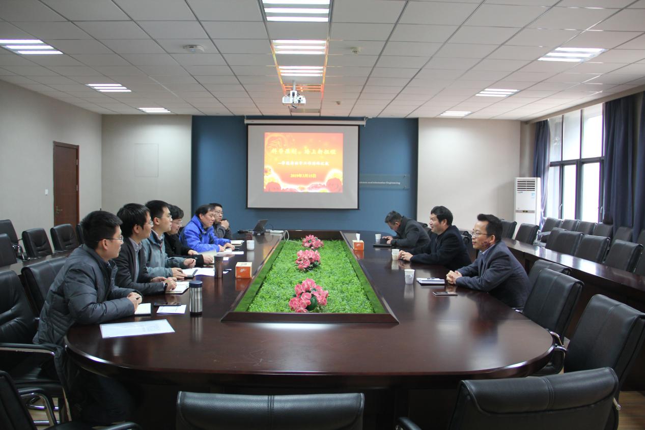 2019年2月28日,校党委书记郑永安来花椒直播 调研并看望新一届花椒直播 领导班子,学校党政办主任刘宇雷陪同调研。花椒直播 党委书记聂东林,常务副院长吴启晖和全体领导班子成员,院党政办相关同志参加了调研会议。