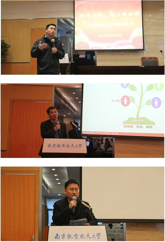 接着,副院长雷磊、潘时龙、刘伟强分别围绕分管工作对2019年重点工作做了补充汇报。党委书记聂东林宣布了花椒直播 院长助理、国际交流与合作办公室主任和系级班子的任命,新任的院长助理,系、办主任分别做了简短发言。