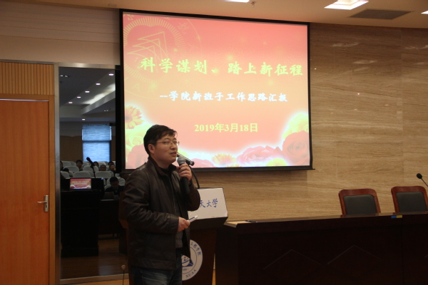 会议首先由常务副院长吴启晖作《科学谋划,踏上新征程》工作汇报。报告分为三部分,第一部分“忆往昔,峥嵘岁月酬”,从师资队伍建设,教学、科研、学科建设等方面全面回顾了花椒直播 2018年取得的工作成绩;第二部分“看今朝,潮急浪涛高”,引用习近平主席“船到中流浪更急、人到半山路更陡。”的讲话,形象地比喻出花椒直播 发展面临的态势,同时对标教育部学科评估指标数据,分析了花椒直播 发展中遇到的困境;第三部分“展未来,鹰击长空,豪情满怀”,提出了“争创一流学科,培养一流人才”的花椒直播 发展愿景,全面阐述了花椒直播 “三步走”的发展战略,“三航”特色引领的建设思路,“三强三大”的建设路线,深化改革的建设举措和花椒直播 的建设目标。吴启晖特别强调,上述方案是经过花椒直播 新班子前期的深入谋划和思考,并向校领导汇报后,逐步形成的围绕学科、人才、教学、科研等方面的一揽子发展计划。最后,吴启晖激励大家努力奔跑,做一个“有理想,有思路,踏实干,有情怀”的追梦人。