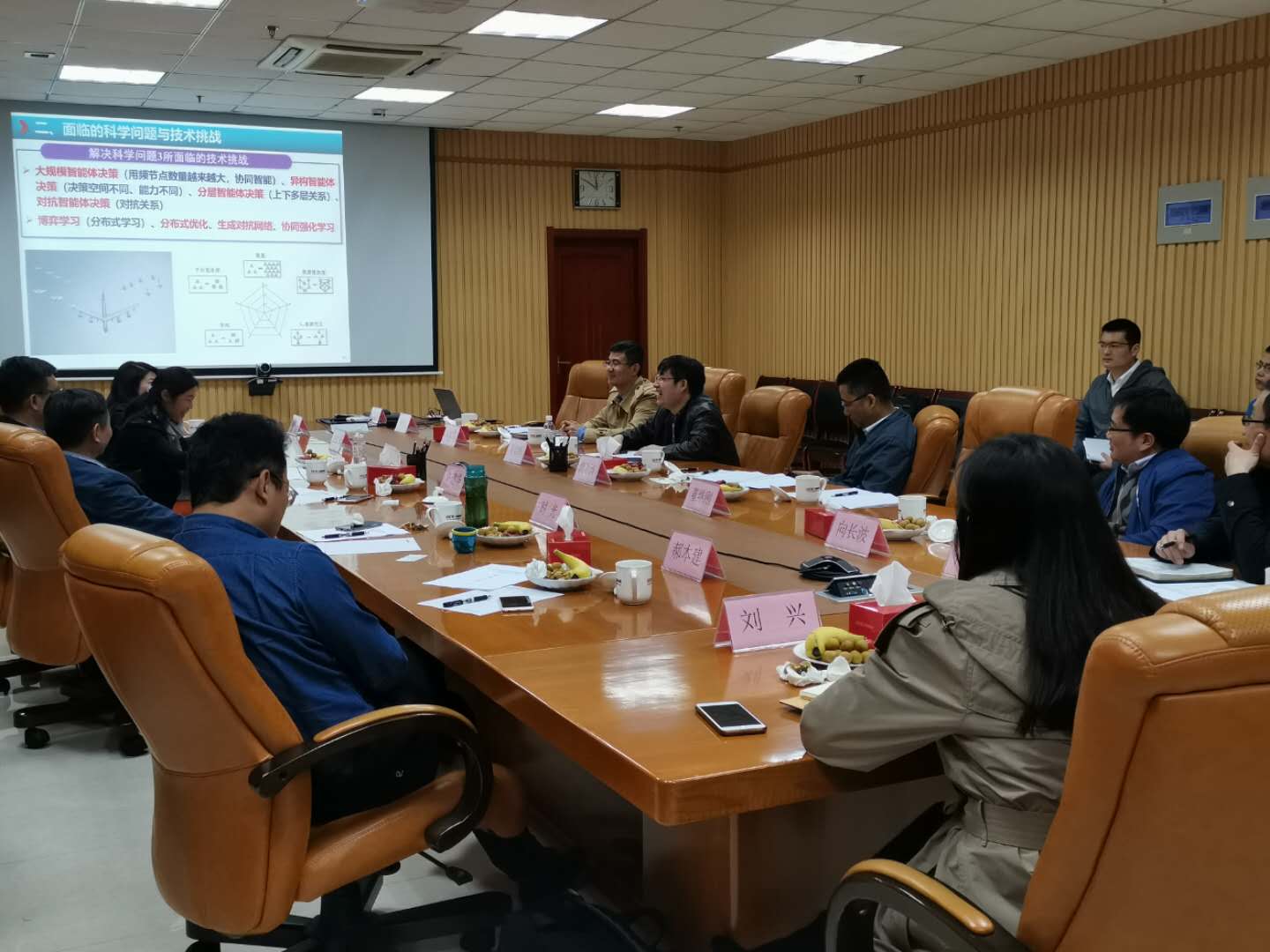 李景春主持了会议,吴启晖教授就国家重大科研仪器研制项目背景、立项依据、主要研究内容、采用的关键技术以及目前项目已取得的进展和未来工作安排进行了汇报。在随后的讨论中,各位专家对开题汇报中的相关内容进行讨论,专家提出了无人机的相对运动是否会对定位精度产生影响、在运动中定位是否需要更加精确的定位等问题;专家还对项目的实用性、无人机供电方式、机载结构芯片是否发生变化以及环境要求等进行提问。针对各专家所提问题,吴启晖教授一一进行解答,并与各专家就项目研发过程中可能存在的困难和问题进行了热烈的探讨和交流。