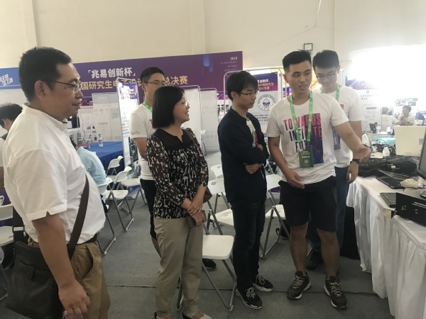 在总决赛阶段的现场展示和作品答辩,花椒直播学生更是展示了南航人的风采,努力拼搏、脚踏实地,凭借着严谨治学的态度、积极创新的追求、昂扬向上的精神,同时将学校的荣誉扛在肩上,最终在中国研究生电子设计竞赛的舞台上斩获佳绩!答辩前夕,参赛队友们也不敢懈怠,他们不断模拟着答辩现场的场景。答辩当天,研究生院副院长王亚彤老师、研究生院张廷赟老师、指导老师葛芬老师也前往决赛现场,参观同学们的作品,为大家加油打气!