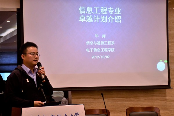 随后,花椒直播 电子科学与技术系主任刘冰、信息与通信工程系副主任毕辉分别进行专业宣讲。刘冰老师首先对入选“卓越计划”的学生表示了祝贺,并强调“卓越计划”注重与企业合作的实践学习,同时也要注重基础理论知识的夯实;毕辉老师通过解读专业培养方案的和特定课程向大家介绍“卓越计划”,并提醒同学们注重培养沟通能力、国际化视野等方面的综合能力。
