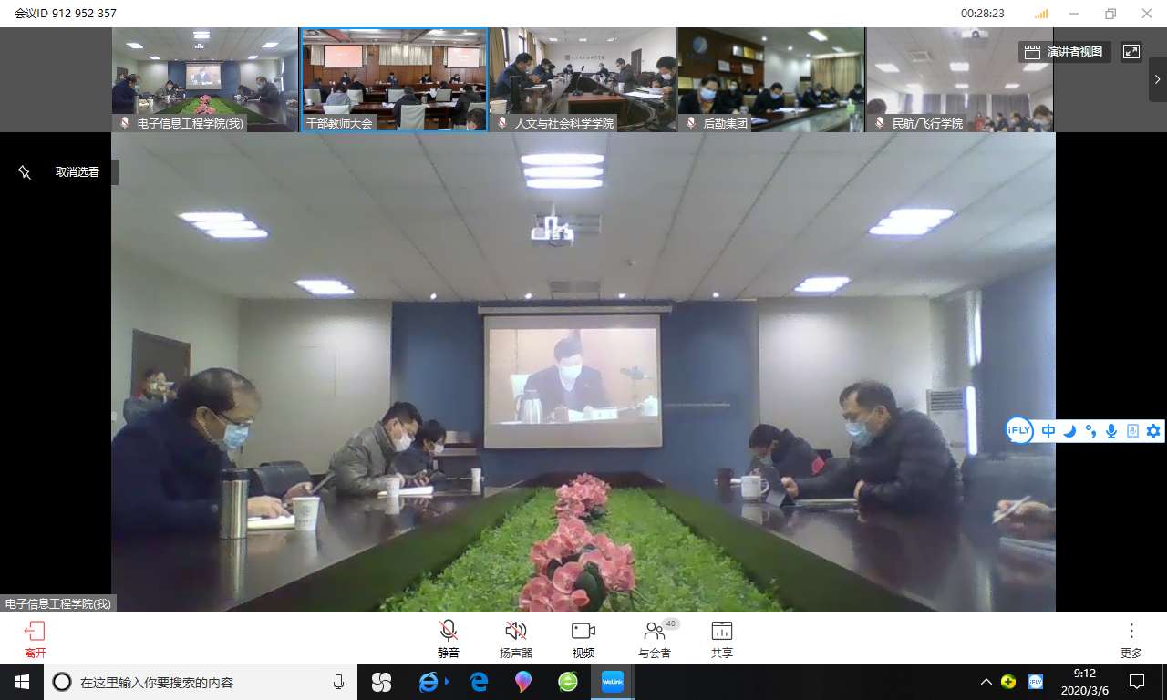 3月6日上午,我校召开了2020年干部教师大会暨全面从严治党工作会议。花椒直播 设立209会议室分会场,花椒直播 全体领导,系主任,教工党支部书记在分会场参会,校党委委员周建江、高层次人才代表朱岱寅老师在线收看了会议实况。根据学校安排,会后花椒直播 组织了讨论,进一步学习贯彻2020年干部教师大会暨全面从严治党工作会议精神,学习讨论会由聂东林书记主持,校长助理,常务副院长吴启晖及全体参会人员参加讨论会。