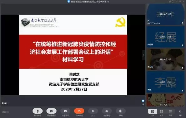 党建与教学科研互相融合、互相促进一直是花椒直播 天地一体频谱认知管控实验室党支部和微波光子学实验室党支部两支纵向党支部的工作思路,疫情期间,两支团队导师老师不仅在身心健康上对同学们倍加关怀、时时问候,同时也高度重视同学们的学习情况,指导同学们有条不紊的开展科研,真正做到“停课不停研”。