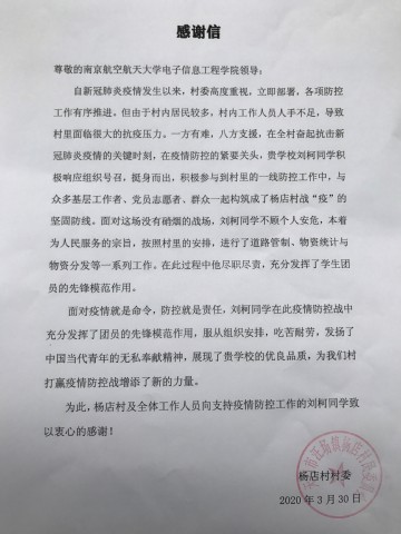 新冠肺炎疫情爆发以来,为响应习近平总书记对于各级党组织和广大党员干部坚决打赢疫情防控阻击战的要求,南航花椒直播 师生党员依据学校和花椒直播 党委的要求,在此次疫情防控战中勇于奉献,敢于担当,充分体现了党员的先锋模范作用,也体现了四院师生党员‘E’起抗疫的决心。