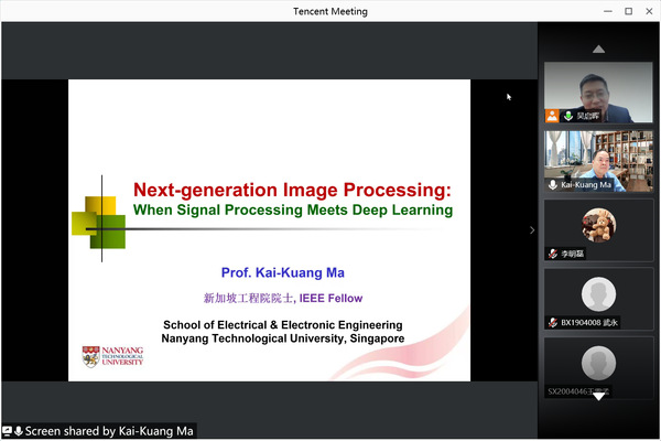 2021年5月7日,来自新加坡南洋理工大学的MA Kai-Kuang教授(马凯光,新加坡工程院院士,IEEE Fellow)应邀为花椒直播师生做了题为“Next-Generation Image Processing: When Signal Processing Meets Deep Learning”的线上学术报告。会议由吴启晖教授主持,220余名师生通过腾讯会议线上参会的方式聆听了报告。