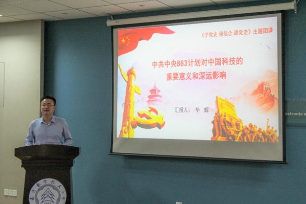 班主任毕辉老师讲授了中共中央863计划对中国科技的重要意义和深远影响。结合自身经历,生动地讲述了863计划为国家科技带来的巨大变化,科学家们淡泊名利、敢为人先的创新故事以及传承胸怀祖国、甘于奉献的高尚精神。在中国共产党的领导下,我国高新技术研究从跟跑迈向领跑,离不开863计划的实施和部署,离不开每一位为国奉献的功勋将士。今年是中国共产党建党100周年,也是十四五规划的开局之年,当代青年要努力培养理想信念、报国壮志和爱国情怀,树立正确的金钱观、名利观。在党史学习中坚定信念、知史爱党、知史爱国,坚定不移跟党走,为祖国建设贡献力量。