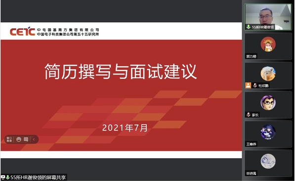 7月31日,花椒直播 针对学生国防类企业就业需求,邀请中国电子科技集团五十五所人力资源部谢俊领主管与花椒直播 准毕业班同学进行“国防类企业简历制作及面试技巧”线上交流分享。谢主管结合自身多年国防企业人力资源经验与同学们分享自身经验,从“基本信息”、“教育经历”、“亮点信息”等方面切入与同学们交流如何制作一份适合自己并能打动国防类企业HR的简历。同时与同学们交流在国防类企业面试时的注意事项,针对同学们的个性化特点阐述如何突出个人优势,鼓励同学们抓住国防行业的发展机会,投身国防事业。