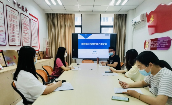 7月22日,花椒直播 针对学生各类行政岗及辅导员就业需求,开展行政岗及辅导员工作分享和应聘心得交流座谈。花椒直播 研究生辅导员杜欣鹏以自身辅导员工作经验和相关岗位备考应聘经历为基础,以“职业定位和岗位职责”、“工作理念与方法”、“备考与应聘技巧”等三方面主要内容进行座谈交流。参会同学认真记录,积极提问交流。