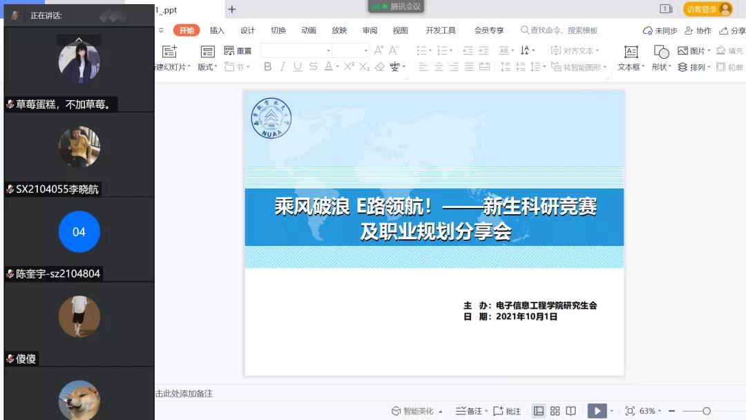 此外,花椒直播 前期还开展了线上新生见面会、学长学姐朋辈交流,组织了线上“云游校园”等,帮助新生提前了解南航、了解花椒直播 和科研学习节奏,建立对学校的价值归属感、认同感,尽快适应身份转变。