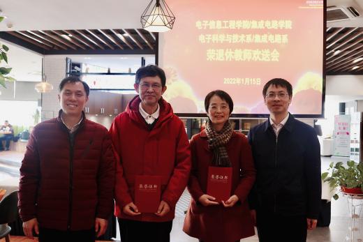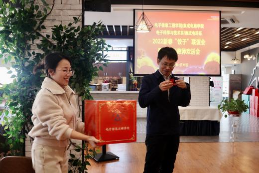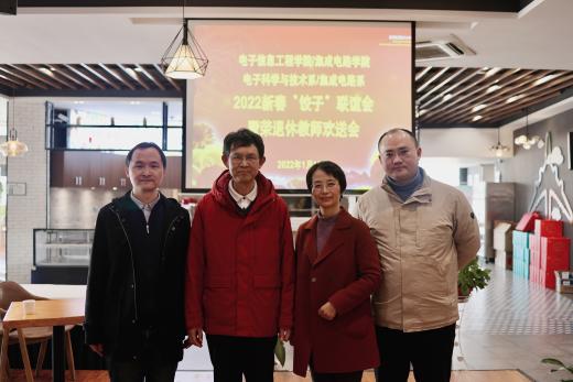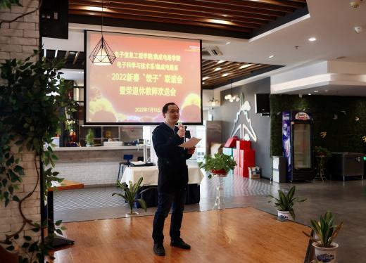 花椒直播 电子科学与技术系/集成电路系于2022年1月15日举办了新春“饺子”联谊暨荣退休教师欢送会,开展了包饺子、棋牌和抽奖等活动,为郑步生和崔晓平老师举办了荣退休教师欢送仪式,花椒直播 及工会相关领导老师一同参加本次活动,系支部书记黄正宇主持本次活动。