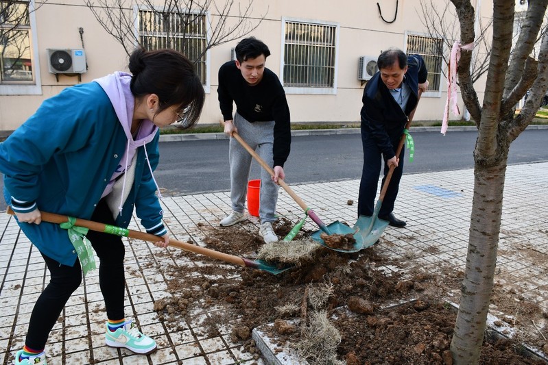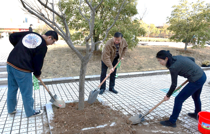 大家干劲十足,挥锹铲土,培土浇水,配合默契。经过大家的辛勤劳动,多颗新树在校园中扎根沃土,迎风而立,生机盎然。