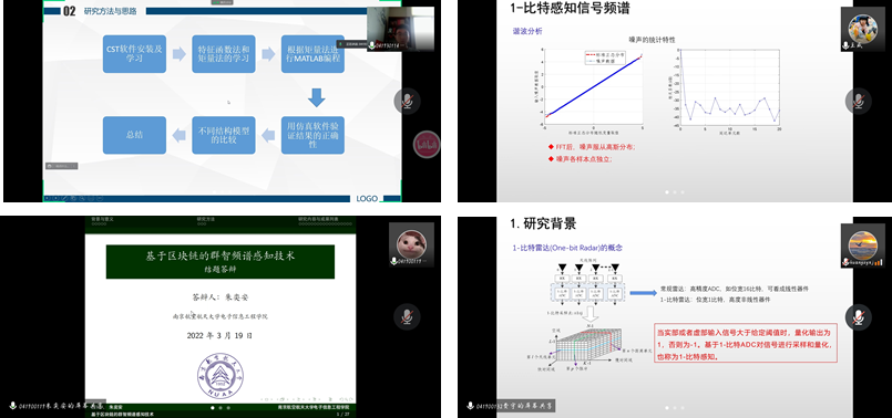经过前期的广泛动员、立项筛选,花椒直播 4个重点团队经过长达半年的研究后,参与此次评审。答辩分为团队陈述及评委提问两个环节。参加答辩的同学分别针对基于区块链的群智频谱感知技术、雷达吸波器设计与相关算法研究、通道误差条件下1-比特雷达目标重构方法研究等展示了科创项目的意义、技术路线、研究过程和成果等,充分展现了当代大学生的创新能力。评委在认真听取同学们的结题答辩后,提出了对项目的看法和改进意见,并鼓励同学们积极参与到科技创新活动中来。