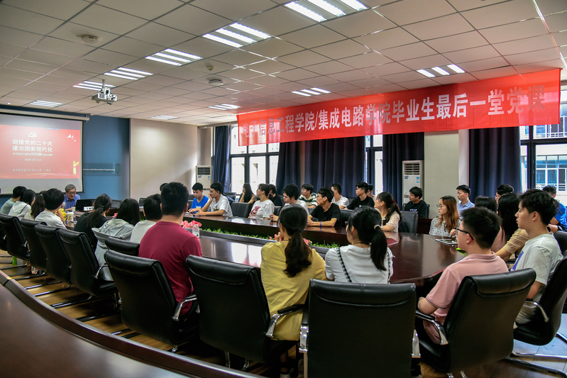 丁荣茂带领同学们回顾了中国共产党的建党历程。并结合自身经历从“世纪大党的百年华诞彪炳史册”开始讲起,用伟大的建党精神告诫毕业生党员同志们要“面向未来,扬帆起航”,不断实现自身价值。同时今年是我校建校七十周年,作为南航人,尤其是电子信息领域的学子,我们为全面建设社会主义现代化强国,夺取新时代中国特色社会主义伟大胜利、实现中华民族伟大复兴中国梦作出更大贡献。
