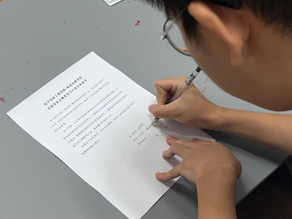 为了让同学们进一步提升实验室安全意识,花椒直播 组织全体同学签署了安全教育学习与责任承诺书,将安全责任落实到位,确保同学们重视安全问题。