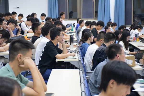 在防诈骗宣传环节,周栋栋首先通过大量鲜活的案例,从“交通安全”“消防安全”两个方面开场,并且通过提问的形式不断引导同学们思考安全的重要性,迅速活跃了现场气氛。他分享了近年来发生在校园里的部分电信诈骗案例,展现了庞大的电信诈骗数据,让同学们切实感受到电信诈骗的概率之高。周栋栋邀请与会同学进行互动,通过“杀猪盘”“裸聊”等案件,采用播放视频和还原案件的方式,逐步揭露电信诈骗分子设下的层层陷阱,给研究生新生们上了一堂印象深刻的防诈骗宣传课。