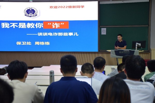 为进一步加强安全教育培训,落实花椒直播 学生工作安全发展政治责任。我院特邀保卫处/党委保卫处副处长周栋栋和花椒直播 科研秘书何倩于9月20日在4101教室进行了防诈骗宣传和安全教育培训。花椒直播 研究生辅导员刘惠欣,本科生辅导员梅旭鹏、全体安全员及2022级全体研究生新生参加了此次培训。