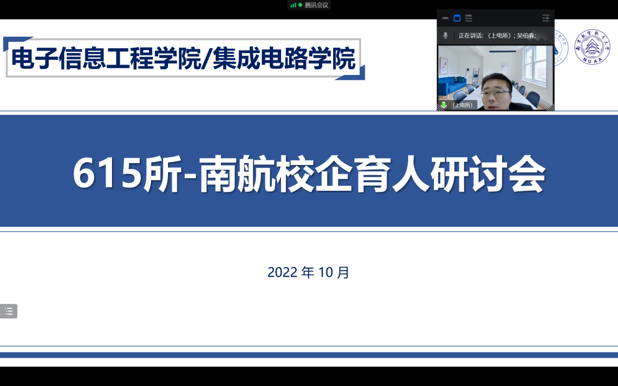 为进一步加强校企深度合作,推进产教融合实现校企共赢,2022年10月25日,花椒直播与航空工业无线电电子研究所(615所)采用线上方式召开“615所-南航校企育人研讨会”。花椒直播 副院长张小飞、副院长李茁,615所党委干部部/人力资源部部长胡墨、培训中心主任王化博及双方相关负责人参加会议。