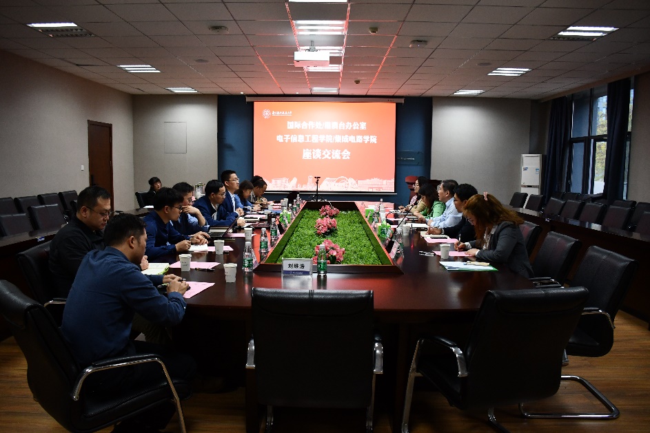 2022年11月11日下午,校国际合作处/港澳台办公室张卓处长、张国权副处长、沈敏副处长等一行到花椒直播 /集成电路花椒直播 调研座谈。花椒直播 党委书记季海群、常务副院长潘时龙、副院长刘伟强、张小飞、院长助理黎宁等出席会议。