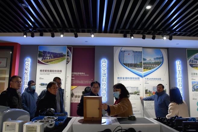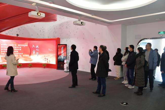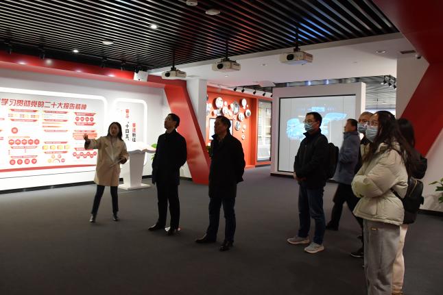 在栖霞高新区党群部工作人员的引领下,大家参观了党群人才服务中心的智汇展厅、智慧书吧、智会视厅、智惠服务、智荟沙龙、智绘办公六个空间,学习其多功能、高科技、新材料、新思维的建设理念,感受到将党史、党建工作做到言传身教和创意应用相结合。