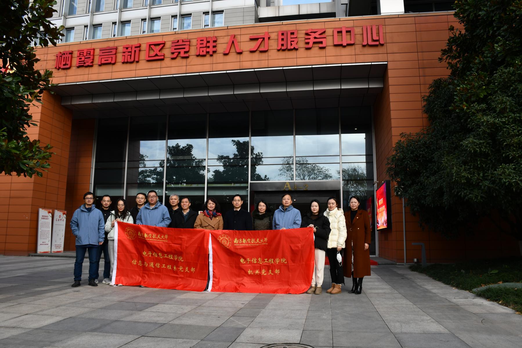 信息与通信工程系党支部、机关党支部前往栖霞高新技术产业开发区紫东国际创意园开展“践行二十大、建功新时代”主题党日活动,先后参观了栖霞高新区党群人才服务中心、图灵人工智能研究院和南京宾达智控科技有限公司并与栖霞高新区开展资源对接会。