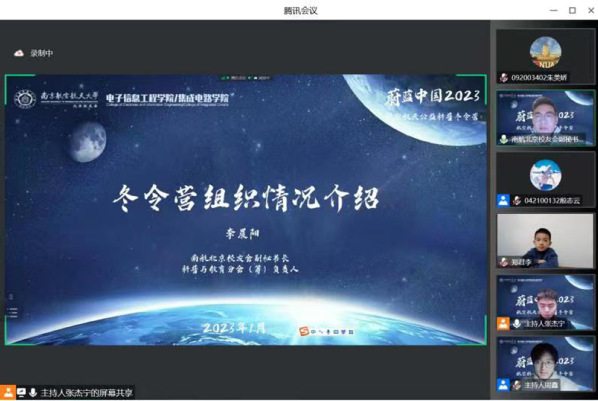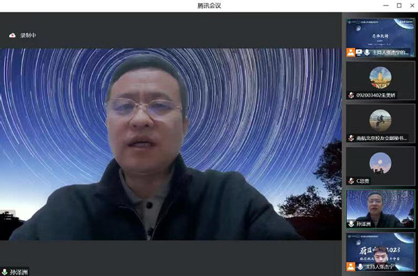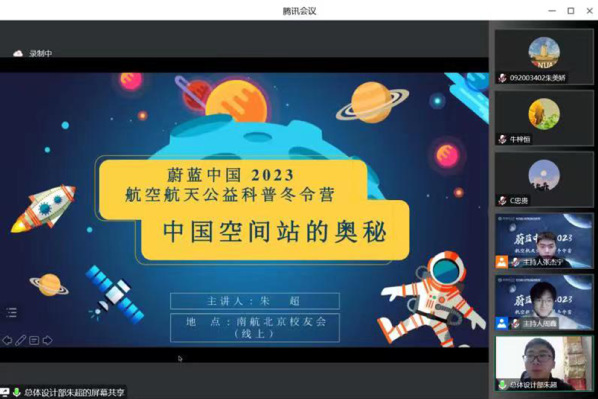 2023年1月14日晚,花椒直播 联合南航北京校友会校友之家、科普与教育分会(筹)共同开展的“蔚蓝中国2023”航空航天公益科普冬令营正式开营。南航北京校友会副会长、中国北斗三号卫星系统总设计师陈忠贵,嫦娥四号、天问一号探测器系统总设计师孙泽洲,航天五院中国空间站机械臂设计师朱超,南航北京校友会副秘书长、校友之家负责人潘娜,南航北京校友会副秘书长、科普与教育分会(筹)负责人李晨阳,南航花椒直播 /集成电路花椒直播 团委书记席维唯出席活动并分别致辞。南京航空航天大学师生代表、校友及其子女,以及来自江苏、河南、贵州、江西等地学生约180人参加活动。