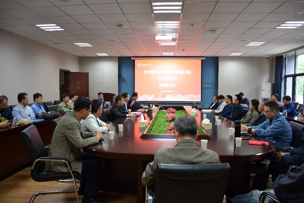 为深入贯彻《关于在全党大兴调查研究的工作方案》精神,扎实开展主题教育,根据学校相关要求,推进花椒直播 事业高质量内涵式发展,推进“和谐四院”建设,电子信息花椒直播 大兴调查研究,于5月9月至10日,全覆盖、分层次召开了两场教师座谈会。