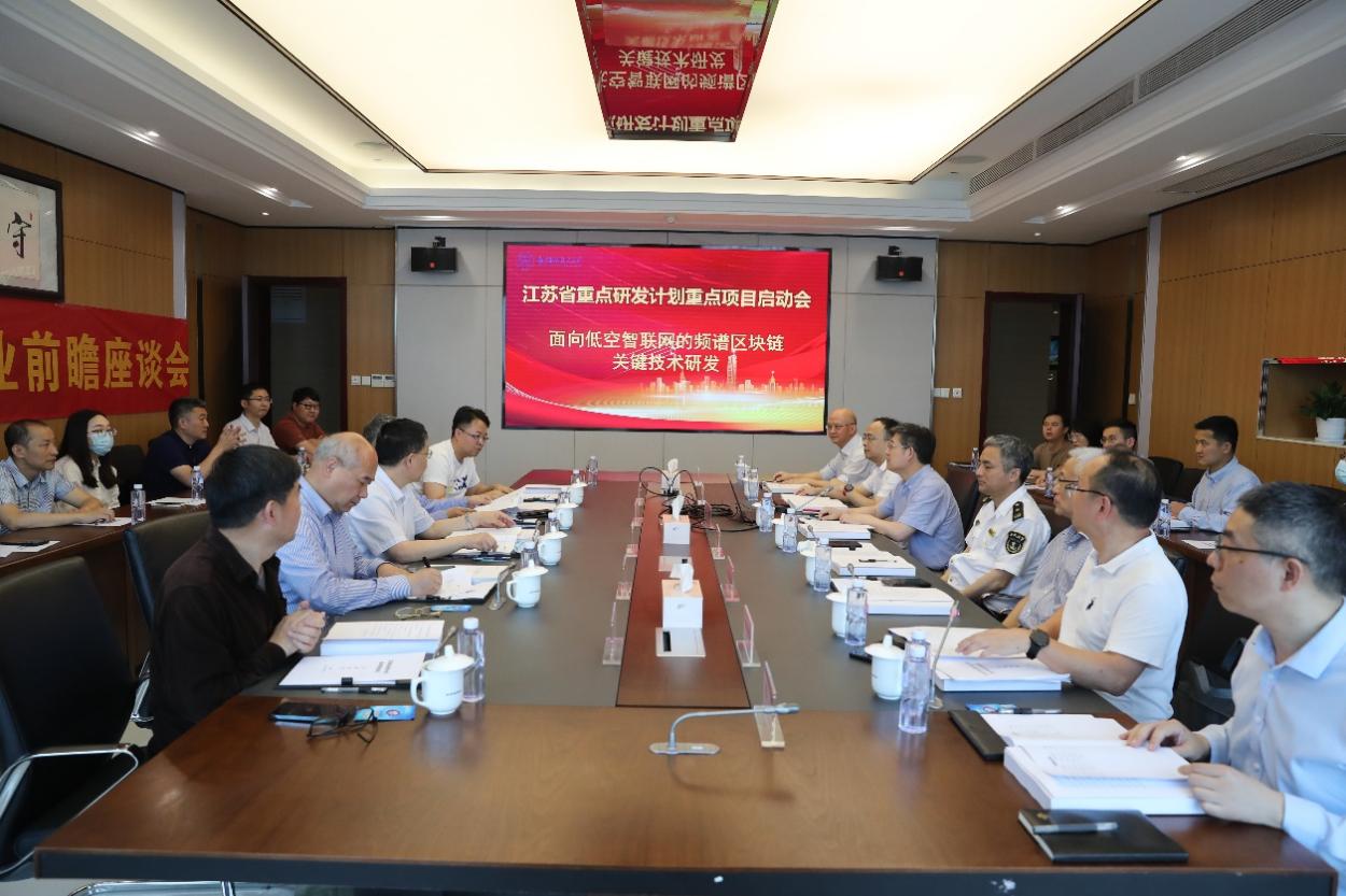 受江苏省科技厅委托,2023年6月2日,南京航空航天大学(以下简称我校)在南京海事局组织召开了我校副校长吴启晖教授负责的江苏省重点研发计划(产业前瞻与关键核心技术)重点项目“面向低空智联网的频谱区块链关键技术研发”项目启动会暨实施方案论证会。项目专家组组长陆军工程大学王金龙院士、专家组成员南京航空航天大学副校长黄志球教授、南京邮电大学朱洪波教授、南京信息工程大学副校长刘博教授、东南大学李必信教授,项目牵头单位南京航空航天大学主要领导、南京海事局领导、江苏省无线电监测站领导、江苏联通领导、国家民用无人驾驶航空试验区(南京)领导,项目负责人、课题负责人、项目组骨干成员等40余人参加了会议。