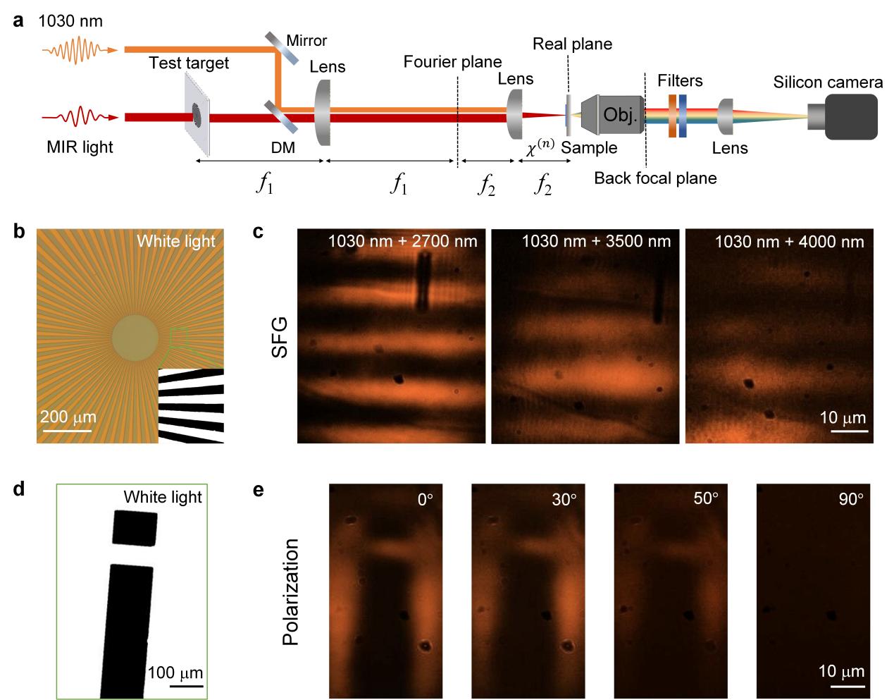 中红外成像作为捕捉分子“指纹光谱”的核心技术,在生物医学、环境监测、安防检测及国防安全等关键领域具有不可替代的战略意义——它可实现生物组织深层无损成像、环境有害气体精准监测、隐蔽目标红外识别等核心需求,是推动相关领域技术升级的重要支撑。长期以来,中红外信号探测高度依赖昂贵、低温工作的专用探测器,系统复杂、成本高昂,严重制约了中红外成像技术的普及应用与产业化发展。而采用非线性频率上转换技术,将不可见的中红外信号转换为可被硅基相机直接探测的可见光,是实现低成本、高灵敏红外成像的核心路线,更是破解中红外成像技术落地难题的关键突破口。但传统非线性材料普遍面临相位匹配条件苛刻、非线性系数低、光谱带宽窄等瓶颈,难以满足实用化中红外成像的需求,成为制约中红外成像技术向低成本、宽波段、高清晰方向发展的核心桎梏。